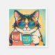 Cat wearing oversized sunglasses, holding a coffee Retro style