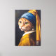 A timeless masterpiece gets a purr-fectly hilarious update! This brilliant and unique piece of art reimagines Johannes Vermeer's iconic "Girl with a Pearl Earring" with a charming ginger cat as the star. With an enigmatic gaze and an adorable face, this feline perfectly captures the spirit of the original painting, complete with the famous blue and yellow turban and, of course, the single luminous pearl earring.