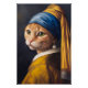 A timeless masterpiece gets a purr-fectly hilarious update! This brilliant and unique piece of art reimagines Johannes Vermeer's iconic "Girl with a Pearl Earring" with a charming ginger cat as the star. With an enigmatic gaze and an adorable face, this feline perfectly captures the spirit of the original painting, complete with the famous blue and yellow turban and, of course, the single luminous pearl earring.