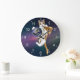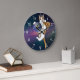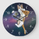 Cat with a planet and eating pizza large clock