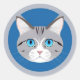 Charming illustration featuring a white-furred cat with striking blue eyes on a solid blue backdrop, showcasing delightful feline characteristics and vibrant colours.