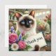 "Express your gratitude in a delightful way with this Cat with Flower Thank You Card. Featuring a cute siamese cat holding a beautiful flower bouquet, this charming design adds a touch of warmth and kindness to your heartfelt thanks. Perfect for sending appreciation for any occasion, whether personal or professional."