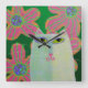Cat with Flowers Abstract Art Square Wall Clock