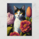 cat with flowers postcard