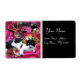 Expressive, funny, natural masked black white cat with Arlecchino hat on vibrant pink ,fuchsia silk clothes .Elegant,whimsical ,colourful ,artistic Venetian masks with peacock feathers from our Collection with gold floral fantasy, and bright purple,red,violet flourishes. Original watercolor painting, Photography ,Digital Collage and Graphic Design by Bulgan Lumini - Baldesign3d (c)