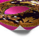 Expressive, funny, natural masked black white cat with Arlecchino hat on vibrant pink ,fuchsia silk clothes .Elegant,whimsical ,colourful ,artistic Venetian masks with peacock feathers from our Collection with gold floral fantasy, and bright purple,red,violet flourishes. Original watercolor painting, Photography ,Digital Collage and Graphic Design by Bulgan Lumini - Baldesign3d (c)