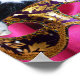 Expressive, funny, natural masked black white cat with Arlecchino hat on vibrant pink ,fuchsia silk clothes .Elegant,whimsical ,colourful ,artistic Venetian masks with peacock feathers from our Collection with gold floral fantasy, and bright purple,red,violet flourishes. Original watercolor painting, Photography ,Digital Collage and Graphic Design by Bulgan Lumini - Baldesign3d (c)