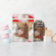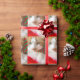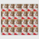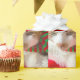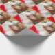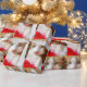 Orange and white cat with a colourful muffler next to a furry Santa hat