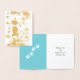 Decorative Cat Illustration in real gold foil, blue inside accented with Paw Prints on one side and a greeting on the other side.