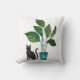 Modern watercolor painting of a little black cat sitting by a house plant in a turquoise blue pot. Original art by Nic Squirrell. Great for cat and houseplant lovers.