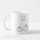 Start your morning with cosy autumn vibes with this mug featuring a minimal line art illustration of a cat sitting behind two pumpkins. The design includes a personalizable text area where you can add a name, making it a thoughtful gift for cat lovers or a charming addition to your own fall collection. This mug brings subtle seasonal style to every sip.
