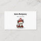 Business cards with a whimsical drawing featuring a big orange red kitty cat.