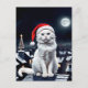 cat with santa hat on the roof postcard