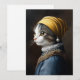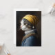 This artwork is a playful and creative reinterpretation of the famous painting “Girl with a Pearl Earring” by Johannes Vermeer. In this version, the figure is portrayed as an elegant cat with a soft, expressive gaze, adorned with a yellow headscarf and a single pearl earring. The realistic textures of the fur, clothing, and accessories blend classical painting techniques with a whimsical animal twist, creating a unique fusion of fine art and fantasy.