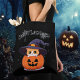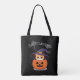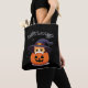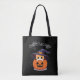 Cat with witch hat in Halloween Jack-O-Lantern Tote Bag