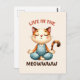 This postcard proudly showcases the words "Live in the Meowww" with a cute cat in a yoga pose, making it an ideal choice for cat and yoga lover.