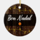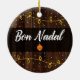 Catalan Christmas greeting - Bon Nadal rustic style holday ornament, with a Catalan flag bauble, Christmas lights and snow design on a rustic background.
