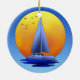 For Captains down to the deck hands, vector catamaran sailing graphic with sunset and seagulls.