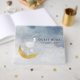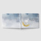 Sweetest little elephant sitting on a gold moon with a white bunny catching a star set on a blue watercolor wash background. Available in our shop in other colours for a girls baby shower or boys baby shower. Visit our shop to view our entire catch a star elephant baby shower collection.