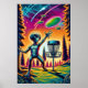 An alien extraterrestrial being playing disc golf. Colourful abstract disc golf art.