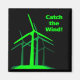 Catch the Wind! - with a graphic of a group of modern wind turbines in vivid green on a black background.