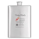 The product is a good size and came exactly as it was pictured. The lid is not attached to the flask, which could be dangerous on drunken nights... The print came out surprisingly well and looks very sharp. Would definitely recommend.