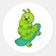 Caterpillar as Skater with Skateboard Classic Round Sticker