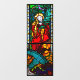 The stained-glass window was designed by Jósef Mehoffer. It was executed by the studio Kirsch & Fleckner, which presented the window at the World Exhibition in Paris in 1900, where Jósef Mehoffer was awarded a gold medal for this work. The detail ( from the Cathedral ) shows the central zone of the right-hand double window. The left-hand window panel is depicted with St Catherine. She is holding a palm branch in her hands. This marks her as a martyr. The wheel is the typical attribute of St Catherine since the middle of the 13th century.