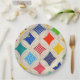 Colourful cathedral window quilt pattern with cotton muslin, calico print, and gingham.