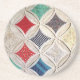 Close up of old cathedral window quilt pattern with calico prints and muslin fabric.