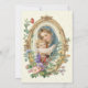 Featuring a beautiful Catholic custom designed Baptism Christening Floral invitation with the Blessed Mother holding Jesus in her arms inlaid in a gold frame with floral spray. All text and fonts may be modified.