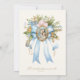 Featuring a beautiful custom designed Catholic Baptism Christening invitation with the Blessed Mother holding Jesus in her arms overlaid on a blue bow with a floral spray. All text and fonts may be modified.