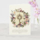 Featuring a custom designed traditional Catholic religious image of the Holy Monstrance with the Eucharist and a floral wreath surrounding. A beautiful card of encouragement with a scripture verse below and the text to the Eucharistic Hymn O Salutaris Host.