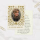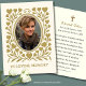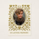 A beautiful and reverent Catholic funeral memorial card honouring the life of a beloved soul. The front features a graceful photo frame encircled by an antique gold heart and vine motif, with the words “In Loving Memory” beneath. The back includes space for the name, birth and death dates, and a traditional Catholic prayer for the repose of the soul, invoking the intercession of the Blessed Virgin Mary and all the Saints. Perfect for tucking into a missal, placing on a home altar, or offering at a Requiem Mass. A cherished keepsake for those who wish to remember and pray for the faithful departed. Easily personalised.