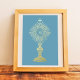 frame is not included - catholic home decor wall art gold foil monstrance small size print (5" x 7")