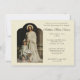 Featuring our traditional Catholic First Holy Communion invitation with Jesus standing next to a young child with the Eucharist overlaid. On the back is a scripture quote with a black and white image of the Host, Chalice, & wheat representing the Bread of Life, Jesus. The background on both sides is a very light ecru lace design. Fonts, texts, and images can be modified. The Shower of Roses Shoppe also offers coordinating Remembrance Holy Cards.