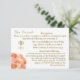 Designed to coordinate with the Terracotta Rose Catholic Wedding Suite, this design is simple yet elegant. Your text is featured in a gold-colour displayed in proper format for an enclosure card and displays the traditional cross and rings symbol for marriage at left of text. The image of a terracotta and peach rose bouquet is displayed at bottom left.