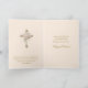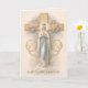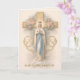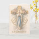 Featuring a lovely religious image of the Blessed Virgin Mother Mary praying overlaid on a gold cross accented with pink flowers All text and fonts may be modified.