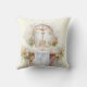 Featuring a watercolor Catholic religious image of the Holy Monstrance with the Holy Eucharist on the Altar. On the other side of the pillow, a crucifix is on the altar.
