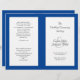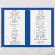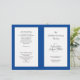 Folded wedding program template for a catholic ceremony. This layered-look program contains white panels over dark blue colour. Each page has space for lots of text to accommodate an involved ceremony. The last page (back of program) includes a section for scripture (sample is "love is patient" from 1 Corinthians) and a message from the bride and groom. All text is an example of a ceremony only - list the order of the ceremony as yours will be and double check spelling and names - NO proofreading will be done on our end.