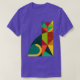 I give wanted to give this a 4 instead of a 5 because these Basic DARK T0shirts run unexpectedly SLIM or Narrow. Which is great if you do not have a potbelly, but I have a paunch. It isn't the shirt's fault that I've got a beer belly. The design and shirt itself is a quality cotton shirt. The color is more of a deep purple, but still a very pretty color. The Basic DARK T-shirts run a bit SLIMMER than the Basic Ts. The neck is a fraction narrower (or seems to be narrower) also. I'm a paunchy middle-aged woman and my neck is 12 inches (31cm) thick and the neckline fell about the same as in the photo of the man, and I had the desire to tug it a bit. So if you're a thick necked man or like loose shirts, be aware these are slimmer shirts. Once I get rid of my lockdown paunch it'll look great. The shirt washed well in cold water with no apparent bleeding. We don't have a dryer, so it hung dry. Did not shrink. Love the colors and the design. The design looks smaller on my shirt than it does on the model on-line. But still, it looks good on the shirt. The printing looks as it does on the model, just the size seems fractionally smaller. Washed garment in cold water, hung dry and design appeared unaffected.