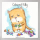 Orange Tabby Cat with a putrid look on his face holds a torn catnip filled toy fish. Many other torn toys surround his feet. He looks to have gone overboard on the catnip and we call him Catnipped Kitty! Original design by Christie Black of Creations from the Heart.