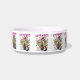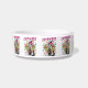 This is a heavy, durable bowl decorated with Tibbies of many colors, the perfect size for hungry/thirsty Tibs. The design is interesting and printing clear.