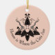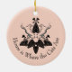 This pretty ornament is embellished with a graphic motif featuring a pair of cats in a relaxed pose surrounded by catnip leaves and flowers in black silhouette. Easily customise the background colour and text.
