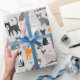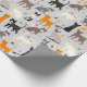 White cat, black cat, tabby cat, Persian cat, Siamese cat, tuxedo cat with paw prints on a light coloured background.