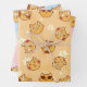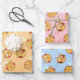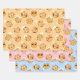 A cute yellow, pink and blue pastel wrapping paper set featuring expressive little cats and paw prints. Great for cat lovers.