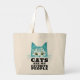 Cats Are My Favorite Sarcastic Quote With Teal Cat Large Tote Bag