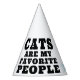 A fun party hat showcases a playful turquoise cat in a charming stencil style, adding a delightful touch. The hat is adorned with the witty and sarcastic phrase "Cats Are My Favourite People" in bold black font, bringing a smile to anyone's face. The white background makes the vibrant cat and eye-catching text pop. Perfect for cat enthusiasts with a sense of humour, this hat adds a friendly and cheerful vibe to any celebration, making it a hit at any party.