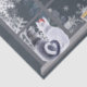 A pretty image with two kitty cats looking out a pained window at huge snowflakes with a Christmas tree and holiday presents and ornament decorating the window. A little yellow bird sits on the middle pane looking at the holiday warmth