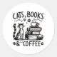 Celebrate the purr-fect combination of relaxation and intellect with our "Cat, Coffee, and Books" sticker. This delightful design captures the essence of serene afternoons, featuring an elegant cat silhouette, a stack of books waiting to be devoured, and a comforting cup of coffee. Ideal for personalising laptops, notebooks, or coffee mugs, this sticker is a must-have for bookworms, cat lovers, and anyone who appreciates the simple joy of reading with a warm beverage. Add a touch of whimsical charm to your belongings or gift it to a like-minded friend who shares your passions.